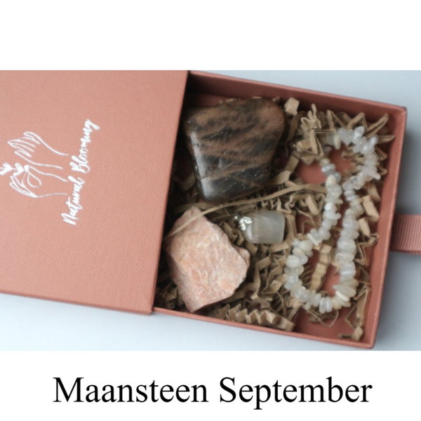 De maansteen geassocieerd met september is een andere variant dan die van juni. Deze maansteen heeft een melkachtige witte kleur en wordt vaak gebruikt voor het bevorderen van emotionele balans, intuïtie en spirituele groei. Het kan ook helpen bij het bevorderen van vruchtbaarheid en het harmoniseren van hormonen.