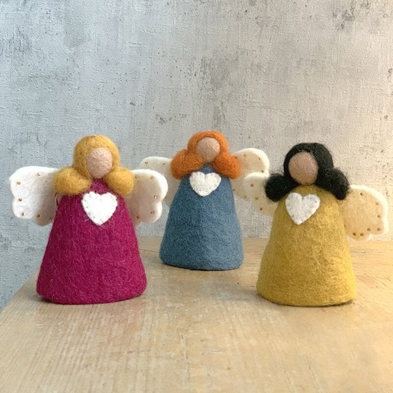 Het engeltje van vilt is fairtrade en handgemaakt in Nepal.