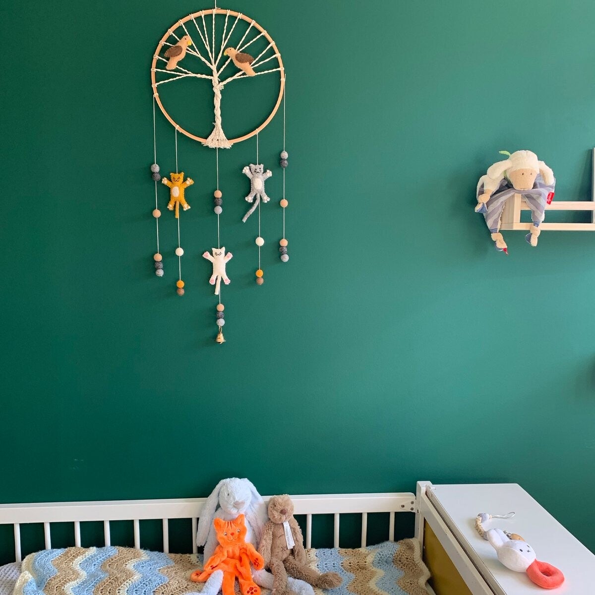 Prachtige dromenvanger met 3 katten en 2 vogeltjes op een levensboom.