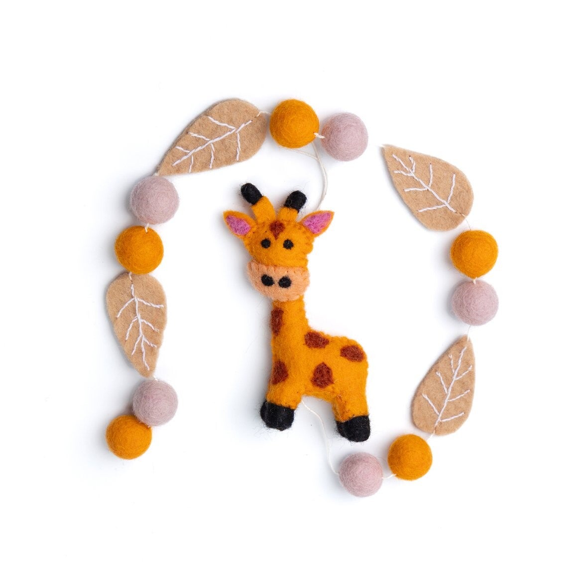 Deze leuke handgemaakte viltenslinger met giraf vrolijkt met haar vrolijke en frisse kleuren meteen je kamer op.