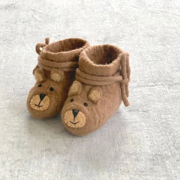 Deze super schattige babyslofjes beertjes van vilt zijn geschikt voor de pasgeboren baby. 0-4maanden.