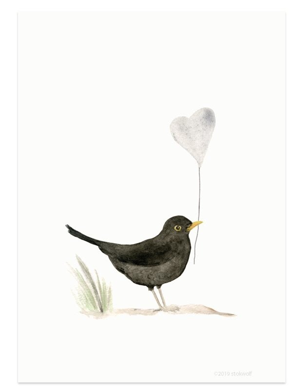 Postkaart merel met hart