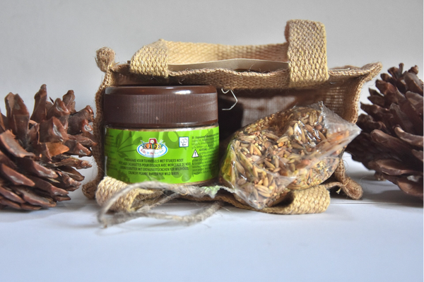 In dit leuke jute tasje zit alles wat je nodig hebt om een heerlijke vogel maaltijd te maken.