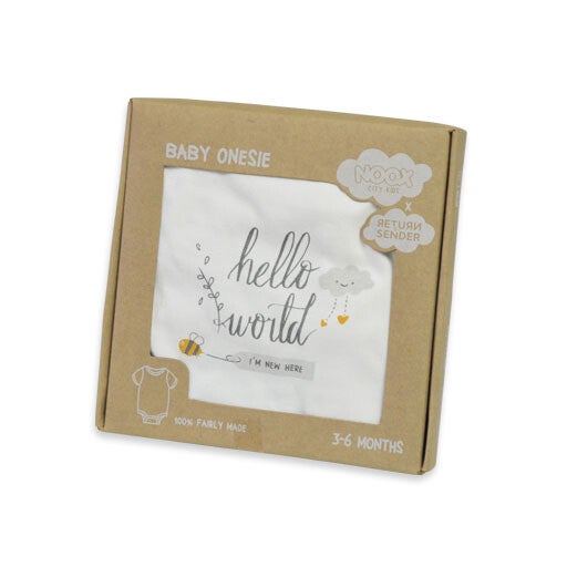 Dit lieve rompertje is verpakt in een doosje van gerecycled kraftkarton.