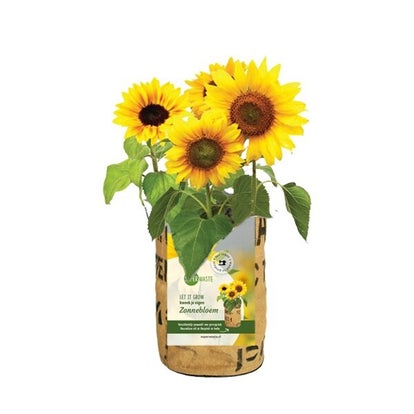 Wanneer de zonnebloemen uitgebloeid zijn, spoel je het zakje eenvoudig om: zo wordt het een handig en uniek opbergzakje.